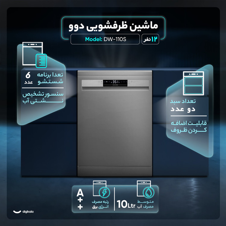 ماشین ظرفشویی 12 نفره دوو مدل DW-110S